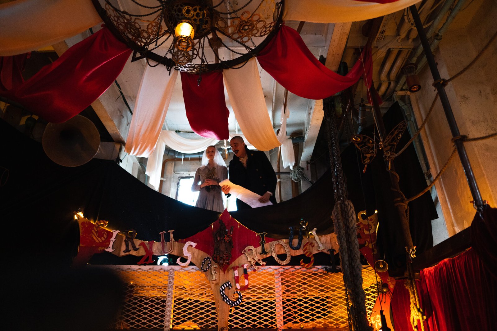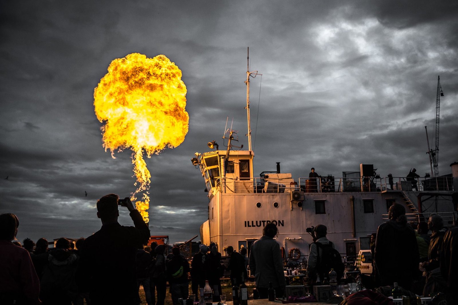 Four storey, 900 m2 barge filled with sets, installations and performances.
